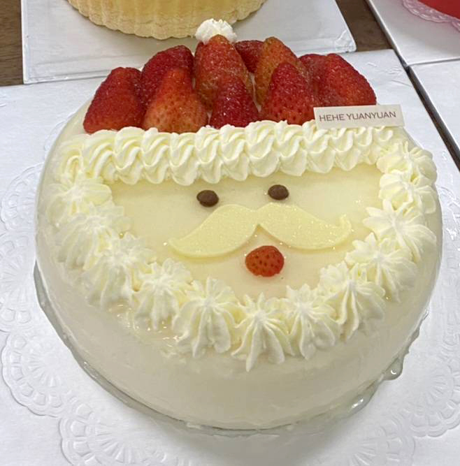 耶誕草莓蛋糕是用日式燙麵手法,打出鬆軟的戚風蛋糕體,中間搭配檸檬及法國kiri乳酪做成的慕斯餡,青香檸檬襯托法國乳酪的奶香,再以草莓和耶誕老人帽子的造型點綴,是很受歡迎的耶誕草莓蛋糕。