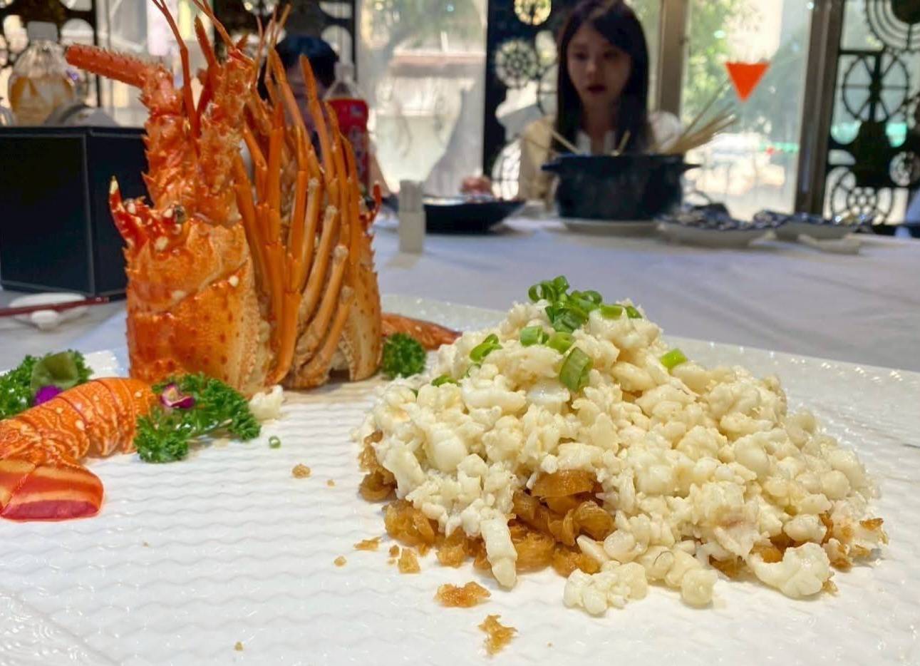 上午的品項,排出龍蝦、婆參、皇帝條、黃金鯧四大天王,還有老師獨門的雙蔥油,香噴十足的雙蔥油,來做蔥燒婆參煨麵、黃金鯧芋頭米粉,已是超凡美味,再以龍蝦做的蝦鬆,絕對是最頂級的Q彈鮮甜蝦鬆,吃過後真會回不去了。