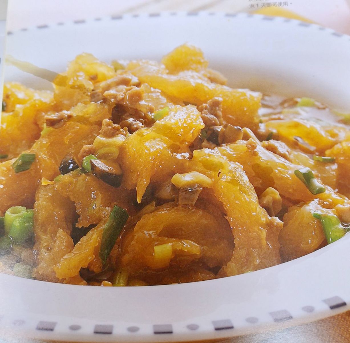 蹄筋雖是發泡程度最繁複的小乾貨,但自己發的Q彈口感及去掉油氣和腥味的品質,就是和買現成的不一樣,而以絞肉、香菇、蔥末的香氣和蹄筋一起燒,超美味的蹄筋料理。