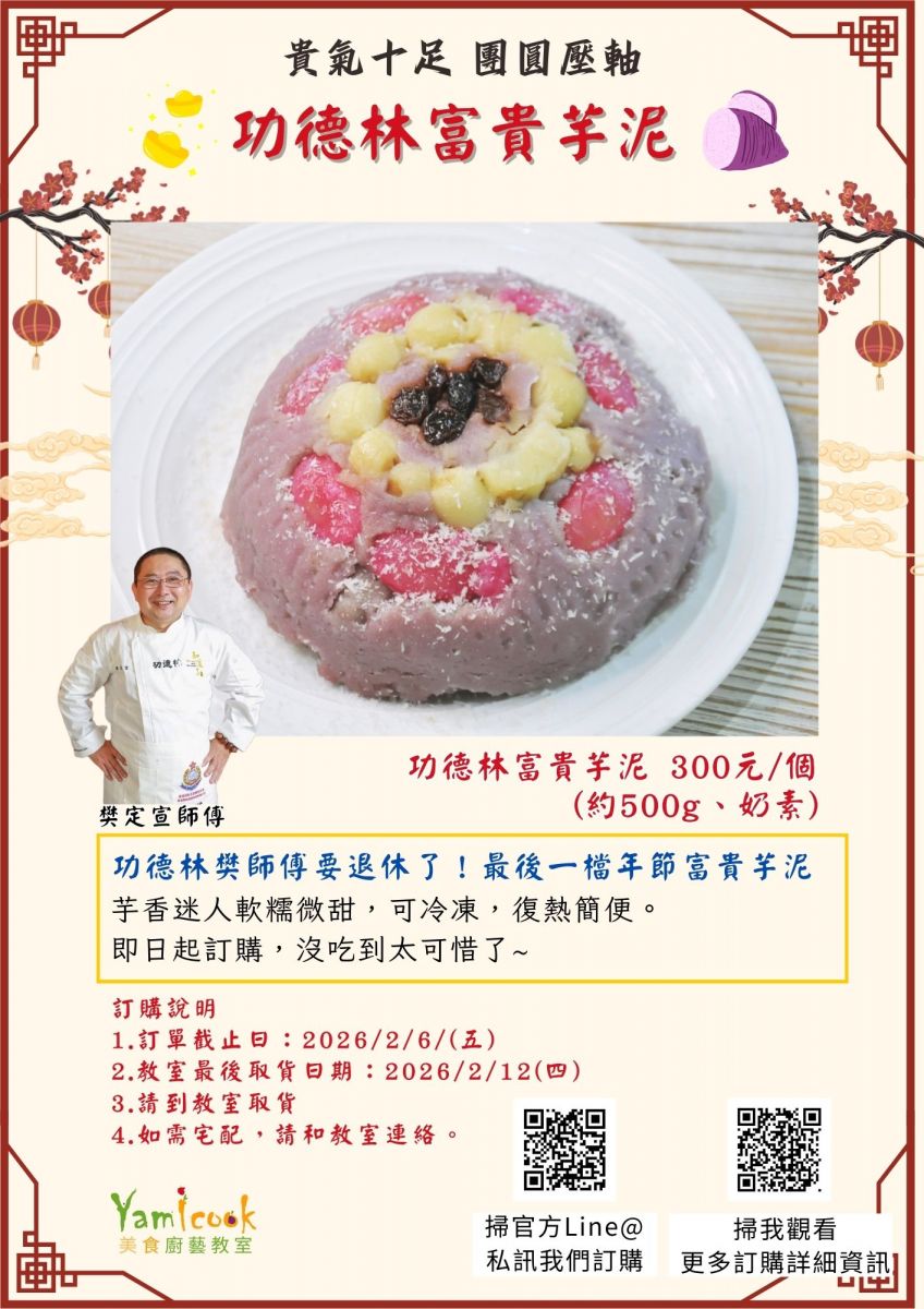 【功德林富貴芋泥】功德林樊師傅要退休了!最後一檔年節富貴芋泥 ,歡迎訂購。訂單截止日:2026/2/6/(五)