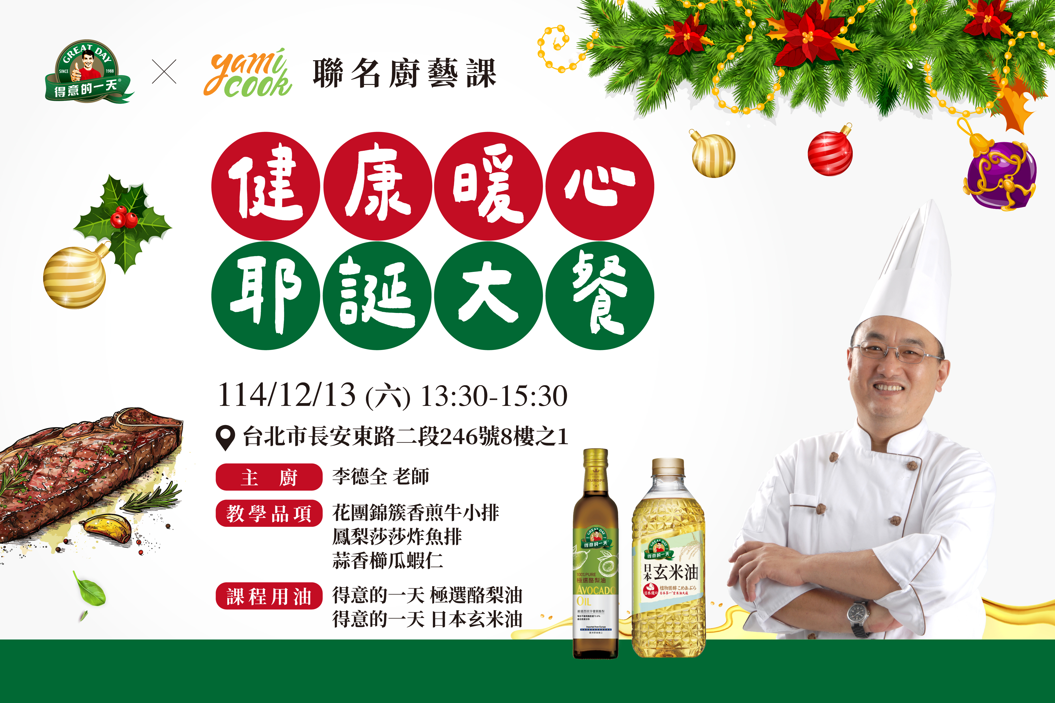 得意的一天 X yamicook 聯名廚藝課 【健康暖心耶誕大餐】
